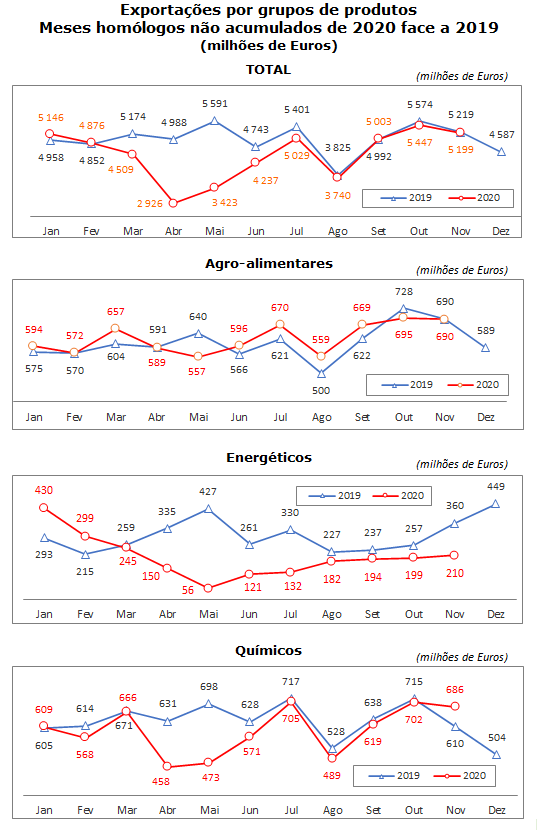 3.3 – Exportações por grupos de produtos 2018-2019 e Janeiro-Novembro 2019-2020