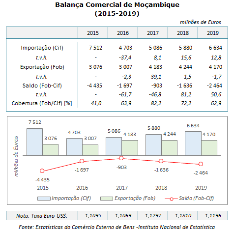 mercadorias com origem em Moçambique, após se terem mantido entre 2017 e 2019